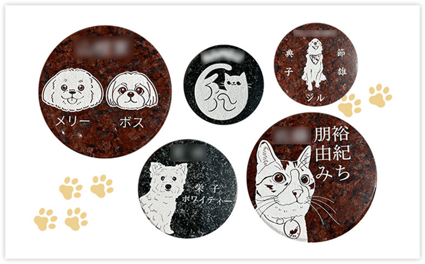 個別にデザインできる墓石プレートは、お名前だけでなくペットの姿や家紋等、ご自由にお決めいただけます。